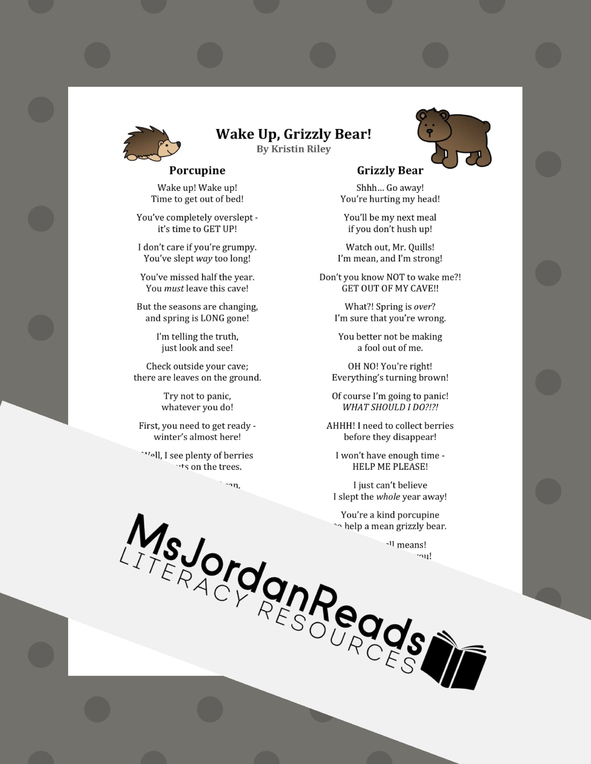 Wake Up Grizzly Bear Partner Poem - MsJordanReads